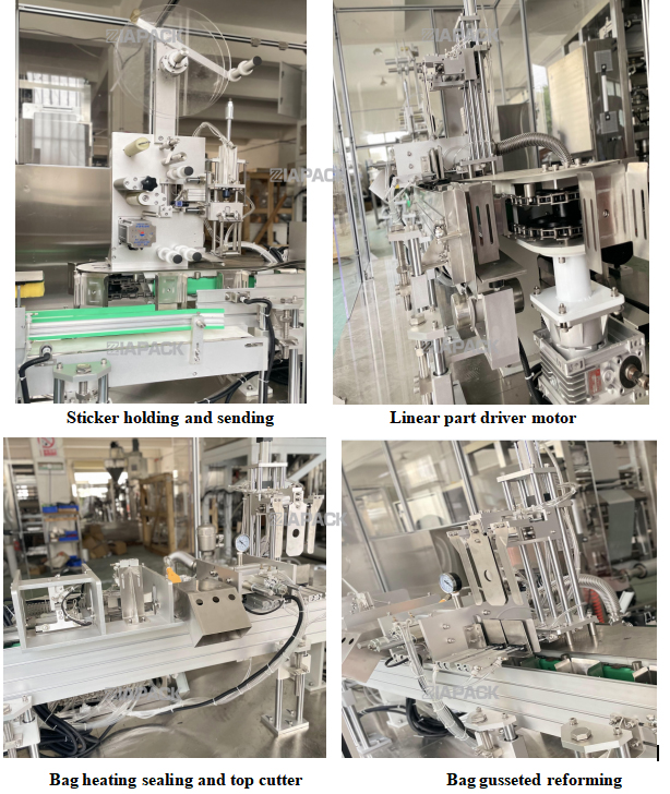 यो मेसिन माथि लेबलिङ भएको गसेट झोला बनाउनको लागि विशेष डिजाइन हो .यस मेसिनमा उत्पादन ड्रप सहितको पूरै झोला पछि।यस मेसिनले झोला बोक्ने, एक पटक झोलाको मुख फोल्ड गरेर लेबल टाँसिनेछ। SUS304 .PLC र टच स्क्रिन Siemens ब्रान्ड द्वारा अपनाईन्छ .र वायमेटिक पार्ट्सले SMC ब्रान्डलाई अपनाउछ .मुख्य विद्युतीय कम्पोनेन्टहरूले Omron र Schneider ब्रान्डलाई अपनाउछन्। यो मेसिनले स्वचालित प्याकेजिङ मेसिनसँग काम गरिरहेको छ जसले समाप्त ब्याग शीर्ष लेबलिङमा पुग्न सक्छ। यो मेसिनले स्वचालित रूपमा कार्य गर्न सक्छ। लेबलको छुट्याइएको ,लेबल पठाउने .लेबल डिटेक्टर र लेबल थिच्ने।