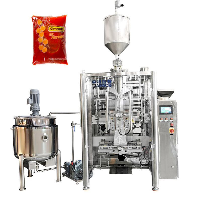 लिक्विड हपर, ट्रान्सफर पम्प र जडान पाइप र मेजरिङ फिलिंग पम्प र vffs प्याकेजिङ्ग मेसिन सहित सम्पूर्ण मेसिन एकाई।