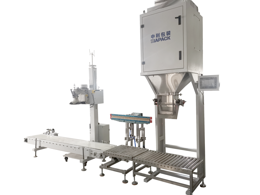 म्यानुअल थैली राख्ने → स्वचालित भरने → स्वचालित वजन → स्वचालित थ्रेड डिलिवरी → म्यानुअल सहायताद्वारा स्वत: थ्रेस सिलाई / सिलाई।