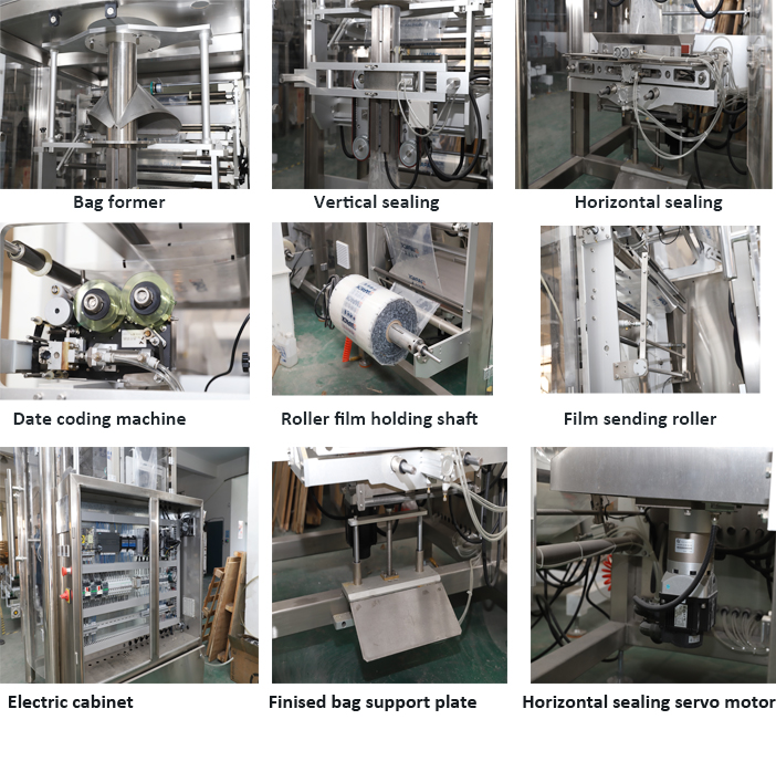 यो मेसिन एकाईले एक सेट ZL720 ठाडो झोला बनाउने सिलिंग मेसिन र एक सेट ZLC-5000 चार बाल्टिन तौल गर्ने मेसिन, एक सेट DT3 ठाडो लिफ्ट र आउटपुट कन्भेयर मेसिन समावेश गर्दछ। सम्पूर्ण मेसिन एकाईले स्वचालित झोला बनाउने, उत्पादन तौल, उत्पादन फिलिंगमा पुग्न सक्छ। सिलिङ र मिति कोडिङ। प्याकिङ स्लेट, डिटर्जेन्ट पाउडर, चामल, सिमी र अन्य दाना उत्पादनको लागि व्यापक रूपमा प्रयोग।